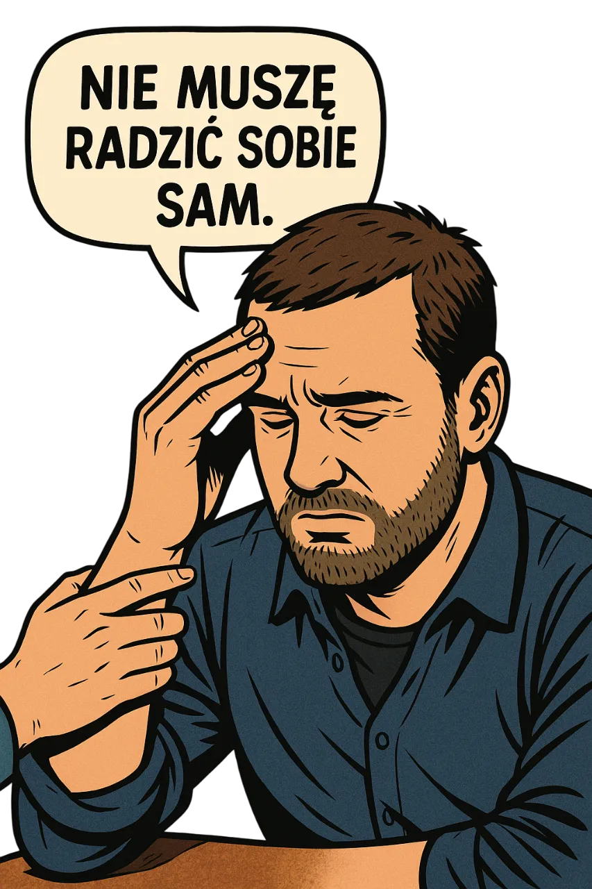 Jako faceci, mamy wdrukowane, że musimy być twardzi i "radzić sobie sami". Proszenie o pomoc jest jak przyznanie się do porażki. Wstydzimy się, że coś nas przerasta – czy to alkohol, praca, czy lęk.